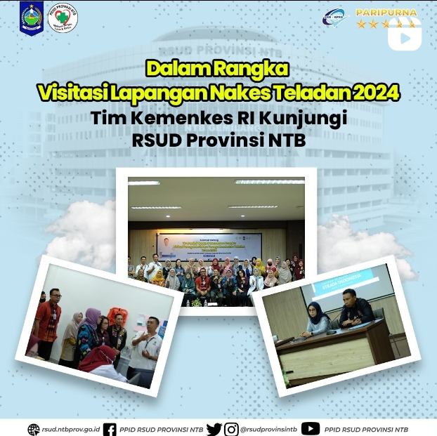 Beberapa hari lalu RSUD Provinsi NTB kedatangan Tim penilai Tingkat Pusat Kementrian Kesehatan Republik Indonesia dalam rangka Visitasi Tenaga Medis dan Tenaga Kesehatan Teladan Tahun 2024,