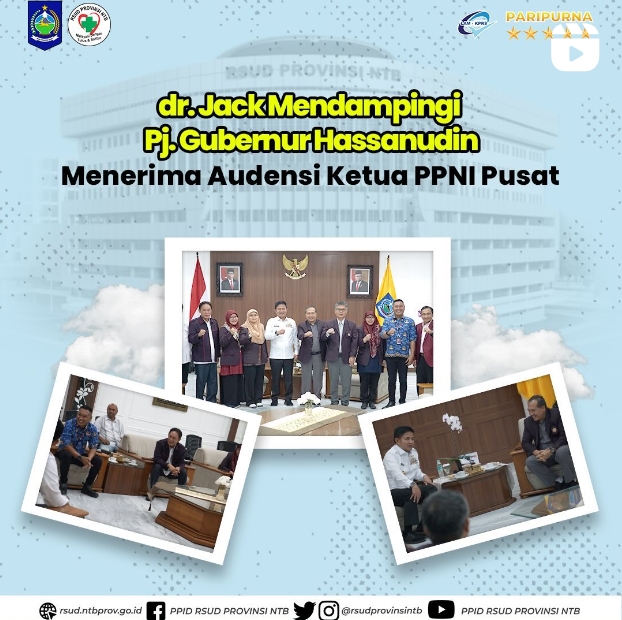 Bertempat di Ruang Kerja Gubernur NTB kemarin “dr. Jack” mendampingi Pj. Gubernur Hassanudin menerima Audiensi Ketua Persatuan Perawat Nasional Indonesia Pusat.