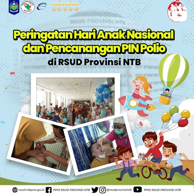 Peringatan Hari Anak Nasional tahun ini di RSUD Provinsi NTB dirangkai dengan pemberian imunisasi polio dalam rangka menyukseskan SUB PIN Polio 2024 dilaksanakan di klinik anak RSUD Provinsi NTB pada pagi hari ini.