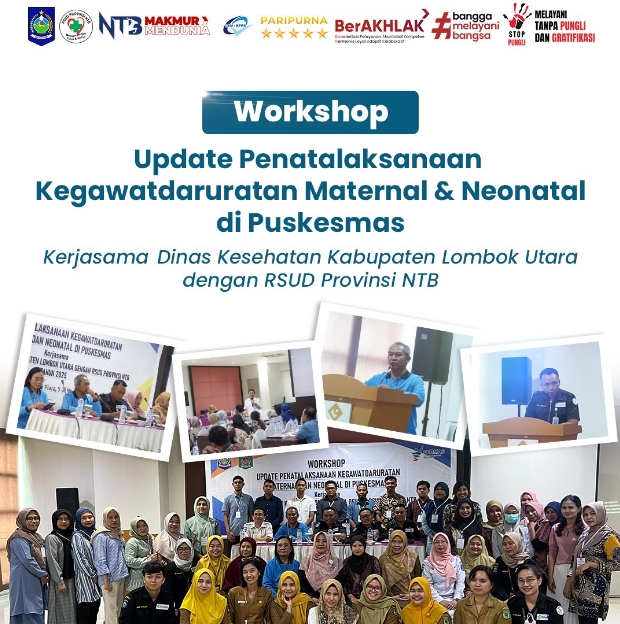 RSUD Provinsi NTB bekerjasama dengan Dinas Kesehatan Kabupaten Lombok Utara kemarin menggelar Workshop Update Penatalaksanaan Kegawatdaruratan Maternal dan Neonatal di Puskesmas.