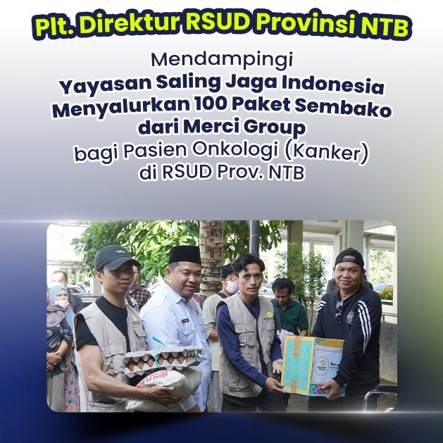 (4 Maret 2026), suasana hangat dan penuh haru menyelimuti RSUD Provinsi NTB. Sebanyak 100 pasien onkologi (kanker) di rumah sakit kami menerima bantuan dari Mercigroup yang disalurkan melalui Yayasan Saling Jaga Indonesia.