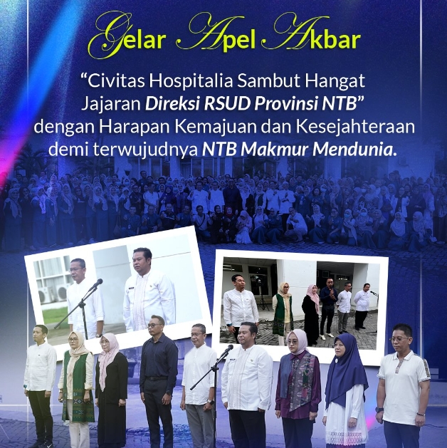 Civitas Hospitalia Sambut Hangat Jajaran Direksi Rumah Sakit Umum Daerah Provinsi Nusa Tenggara Barat yang baru dilantik oleh Bapak Gubernur NTB dengan Harapan Kemajuan dan Kesejahteraan demi terwujudnya NTB Makmur Mendunia.