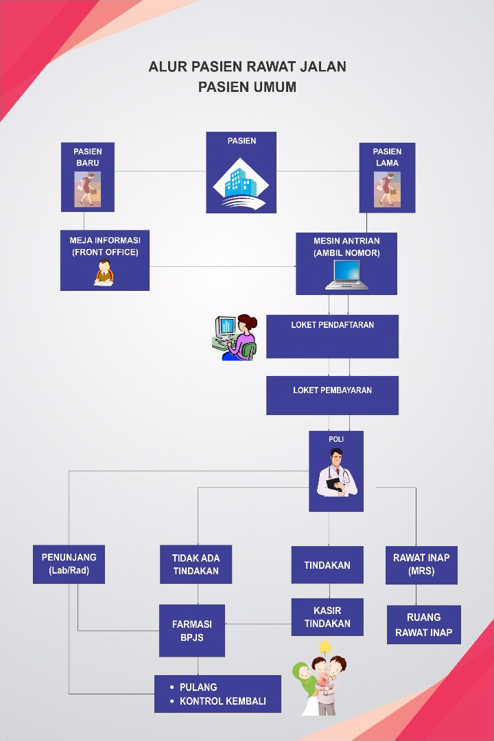 Alur Pelayanan Pasien Alur PelayananAlur Pelayanan Pasien IGDAlur Pelayanan Pasien Rawat Jalan untuk Pasien UmumAlur Pelayanan Pasien Rawat Jalan untuk Pasien BPJS KesehatanAlur Pelayanan Pasien Rawat InapAlur Pelayanan Pasien HemodialisaAlur Pemeriksaan LaboratoriumAlur Pelayanan Darah