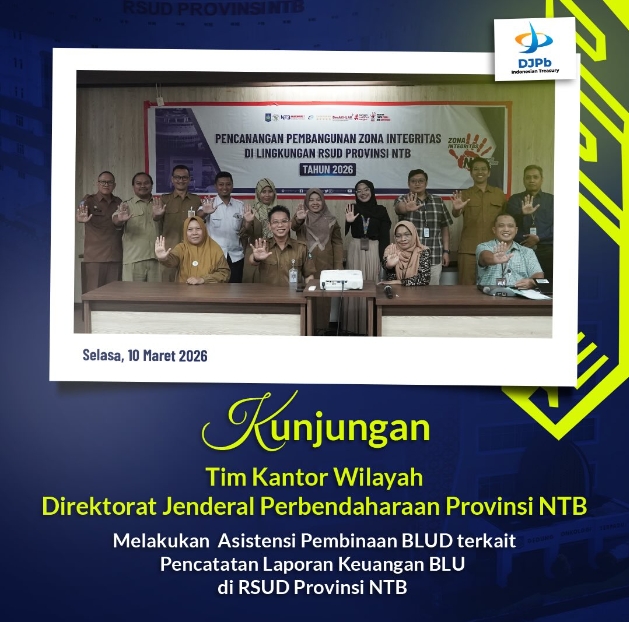 Kunjungan Tim Kantor Wilayah Direktorat Jenderal Perbendaharaan Provinsi NTB Dalam Rangka Asistensi Pembinaan BLUD Terkait Pencatatan Laporan Keuangan BLU di RSUD Provinsi NTB