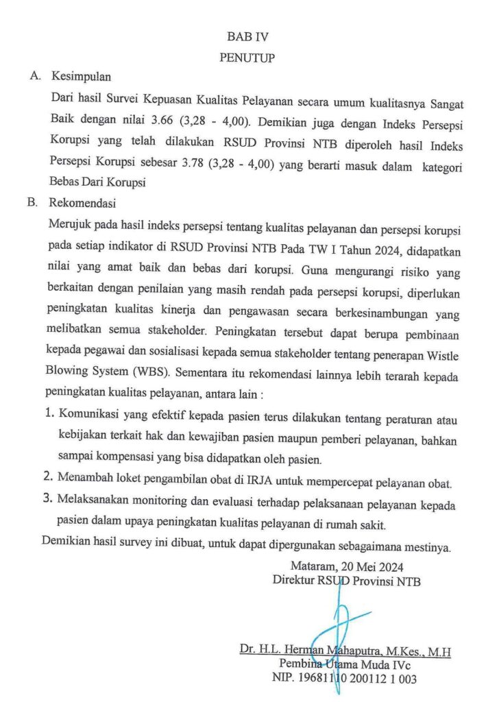 Dokumen Laporan Kualitas Pelayanan dan Persepsi Korupsi Tw I Tahun 2024 dapat diakses pada link berikut ini : DOKUMEN