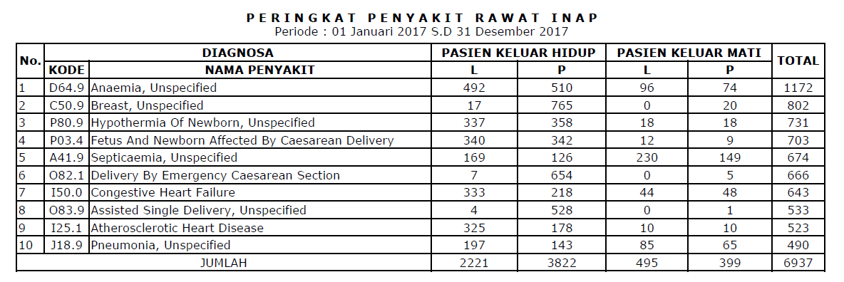 Peringkat Penyakit Terbanyak Tahun 2017 Peringkat Penyakit Rawat Darurat Peringkat Penyakit Rawat Jalan Peringkat Penyakit Rawat Inap